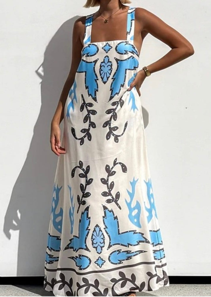 Beautiful Printed Lose Fitting Dress With Self Tie Straps. Straps Can Be Tied Multiple Ways.